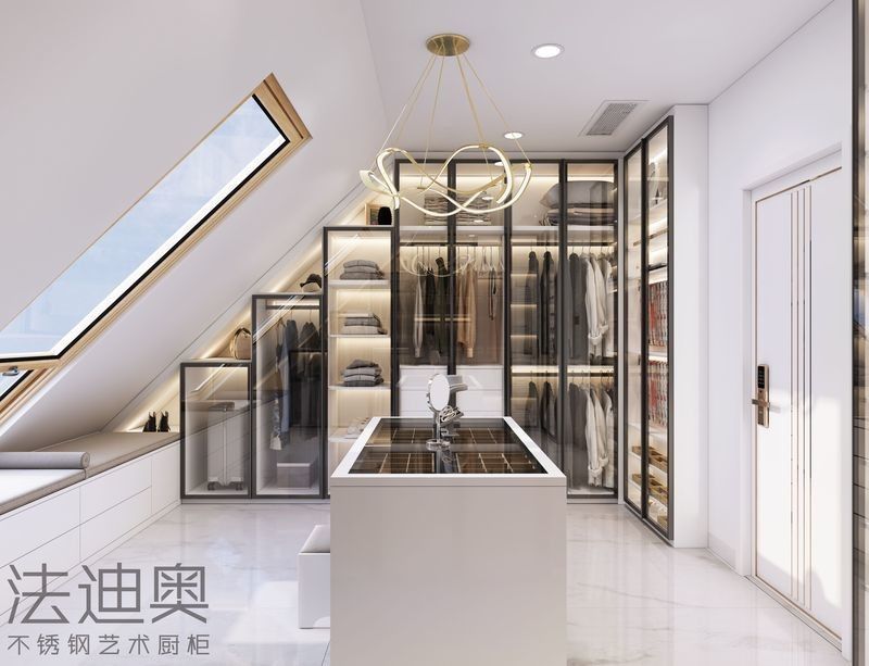 | P: Czy ten wyrafinowany walk in closet jest głównie dekoracyjny czy naprawdę gotowy do projektu? Czyta się to jako gotowe do projektu, ponieważ strona nadal wiąże styl z strukturą szafki ze stali nierdzewnej, koordynacją pulpitu i planowaniem urządzeń.To utrzymuje język projektowania połączony z logiką wykonania.. |