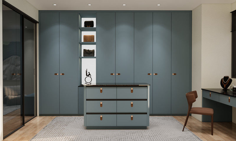 | P: Jakie sygnały personalizacji są już widoczne na tej stronie niebiesko-szarej niestandardowej garderoby? Najwyraźniejsze sygnały to koordynacja rozmiaru, kolory szary / czarny / niebieski i planowanie przechowywania. Te wskazówki pomagają kupującemu ocenić, czy dostawca może dostosować produkt do projektu, zamiast wysyłać gotowy moduł detaliczny. |