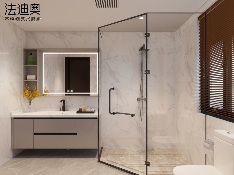 Ta łazienkowa szafka podumywalkowa jest prezentowana jako system oparty na projektowaniu, a nie jako generyczny SKU. Wykorzystuje kolor Szary wraz z Premium strukturą szafki ze stali nierdzewnej, aby stworzyć bardziej spójną tożsamość wizualną dla premium projektów mieszkaniowych.