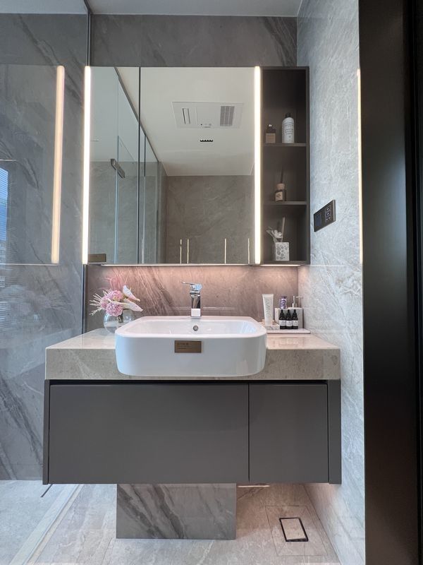 Ta szafka łazienkowa jest prezentowana jako system projektowy, a nie jako generyczny SKU. Wykorzystuje kontrolowaną paletę wykończeń w połączeniu ze stalową konstrukcją szafki, aby stworzyć bardziej spójną tożsamość wizualną dla projektów premium w budownictwie mieszkaniowym.