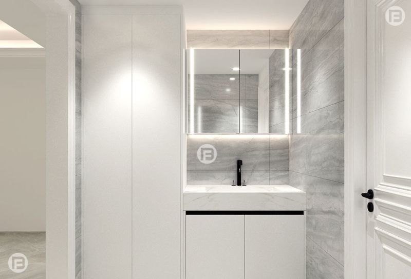 Ta szafka łazienkowa jest prezentowana jako system projektowy, a nie jako generyczny SKU. Wykorzystuje biel w połączeniu z konstrukcją szafki ze stali nierdzewnej Premium, aby stworzyć bardziej spójną tożsamość wizualną dla projektów premium w budownictwie mieszkaniowym.