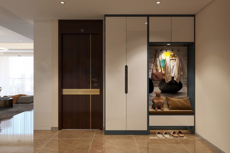 Ta szafka na buty jest prezentowana jako system oparty na projektowaniu, a nie jako generyczny SKU. Wykorzystuje biel w połączeniu ze strukturą szafki ze stali nierdzewnej, aby stworzyć bardziej spójną tożsamość wizualną dla premium projektów mieszkaniowych.