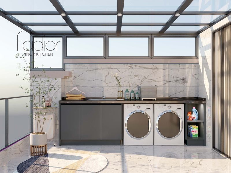 | Charakterystyka przechowywania | Zawiera samodzielną szafę, przestrzeń do prania i suszenia maszyn oraz otwartą półkę z zintegrowanym |
