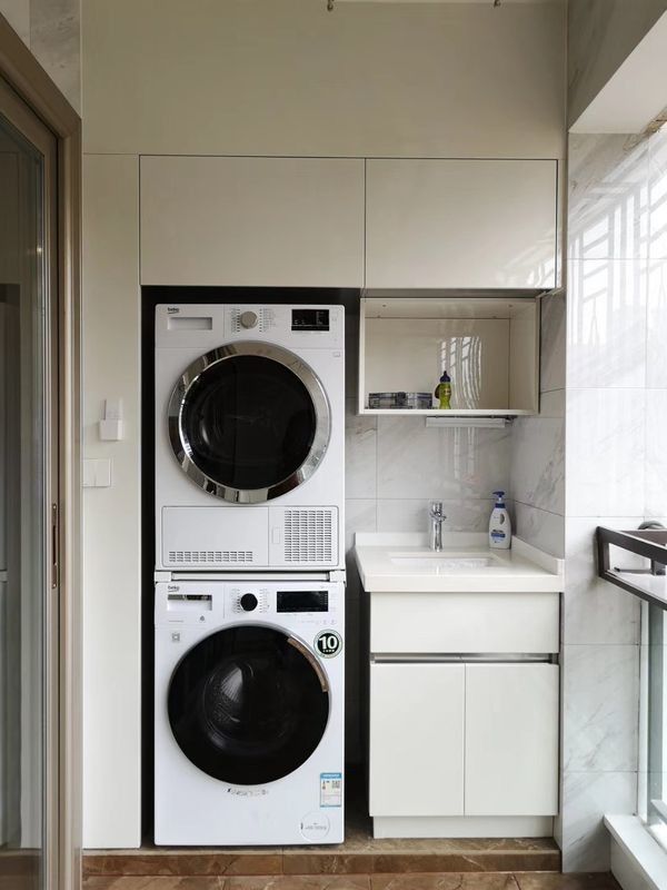 | Funkcjonalność | Łączy praktyczne przechowywanie z wbudowanym gniazdem do pralki i suszarki i eleganckim wykończeniem, aby zwiększyć ogólną użyteczność i projekt. |