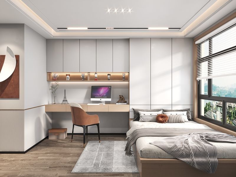 | Rozwiązania do przechowywania | Zawiera duże szafki wiszące, otwarte półki i szuflady do przechowywania pod łóżkiem, co ułatwia organizację |