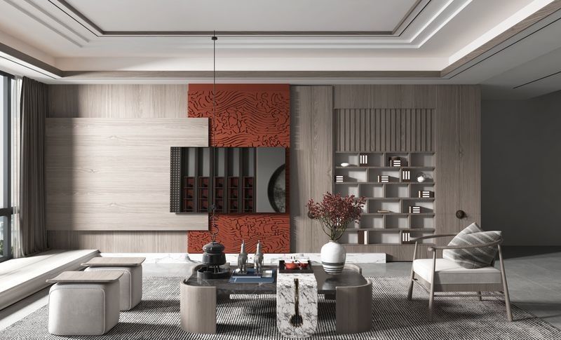 Łączy również w pełni zintegrowane rozwiązanie szafki pod telewizor, łączące centralny obszar ekspozycyjny z bocznymi półkami i ukrytymi schowkami. z wolnym od formaldehydu, pomagając klientom ocenić, czy historia wykończenia, integracja urządzeń i planowanie codziennego użytkowania mogą pozostać zgodne w jednym systemie.