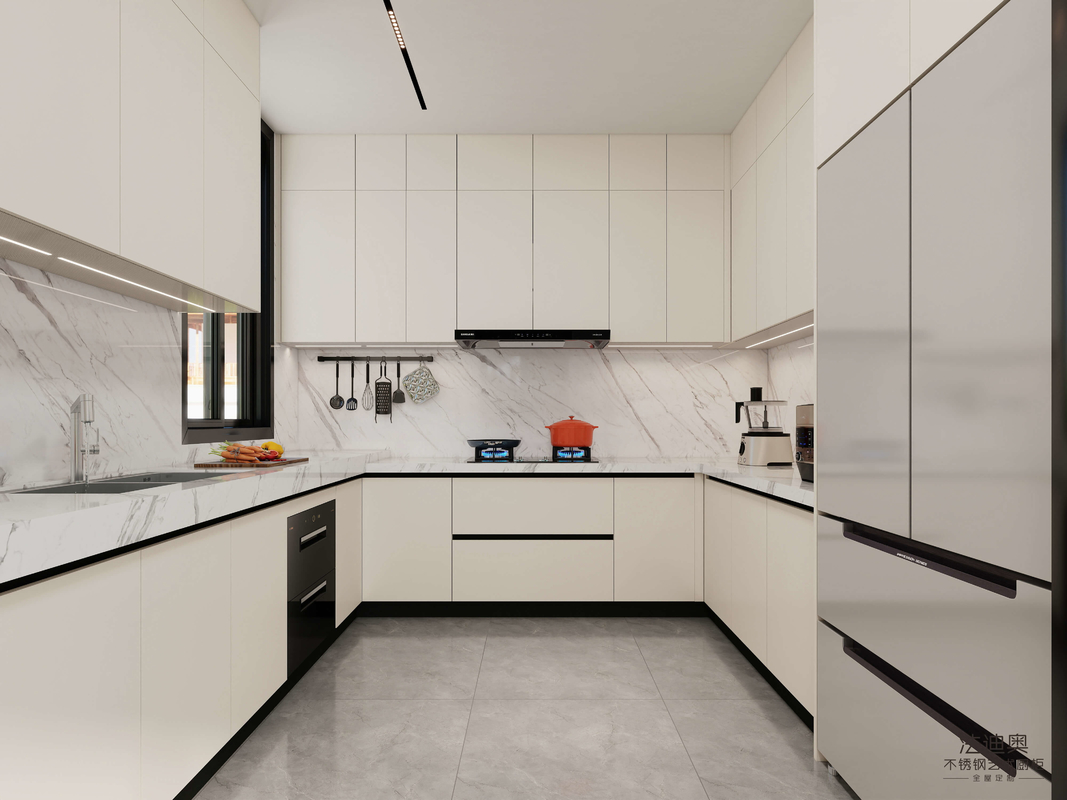 Doświadcz doskonałego połączenia minimalistycznego designu i doskonałości funkcjonalnej z innowacyjnym rozwiązaniem kuchni wielo-strefowej firmy Fadior.Ten wyrafinowany układ mistrzowsko oddziela mokre i suche pokoje kuchenne, a jednocześnie zawiera wszechstronny bar do śniadania, tworząc odrębne, ale połączone przestrzenie do działalności kulinarnej.Czyste szafki w miękkiej białej parze bezproblemowo z rozległymi białymi powierzchniami kwarcowymi, które rozciągają się na stanowiskach pracy i podkładkachStrategicznie umieszczone półki na ścianie z zintegrowanym oświetleniem LED zwiększają zarówno funkcjonalność, jak i atmosferę.Podczas gdy inteligentne strefy pozwalają na jednoczesne przygotowywanie żywnościSpecjalistyka Fadiora w zakresie personalizacji całego domu przejawia się w tej przemyślanej konfiguracji.gdzie najwyższej jakości materiały łączą się z ergonomią, tworząc kuchnię praktyczną i piękną..